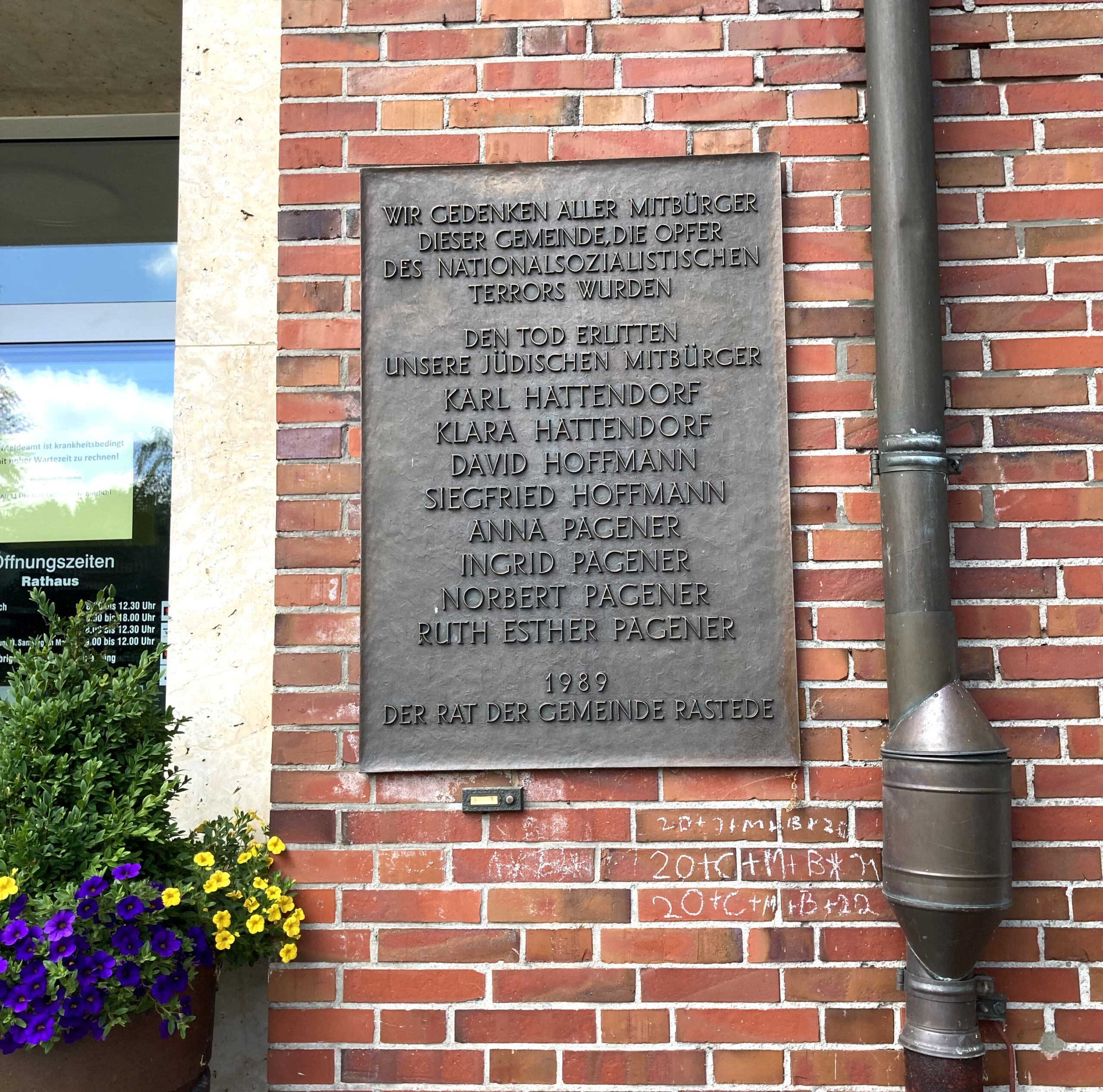 Am Samstag, den 9. November 2025, gedenken wir aller jüdischen Opfer des Nationalsozialismus. Indem wir die Geschichte der jüdischen Mitbürger und Mitbürgerinnen unserer Gemeinde erzählen, erzählen wir auch eine Geschichte von Ausgrenzung, Verfolgung, Vertreibung und Deportation in der Gemeinde Rastede. Unter dem Titel „Nie wieder!“ wollen wir ein Zeichen setzen gegen Antisemitismus und Rassismus, für Vielfalt und Gemeinschaft. Der Gedenkgang am Sonntag, den 9. November 2025, beginnt um 16.00 Uhr am Rasteder Rathaus. Von dort begeben wir uns zu den ehemaligen Wohnhäusern der jüdischen Familien in der Raiffeisenstraße, Bahnhofstraße und Schloßstraße. Die letzte Station des Gedenkgangs bildet das Rasteder Palais.